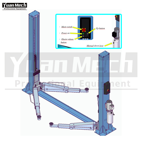 YuanMech Cars 22mm 2021 iki Post hidrolik araba asansörü arabalar için gelişmiş 2 kaldırma direği